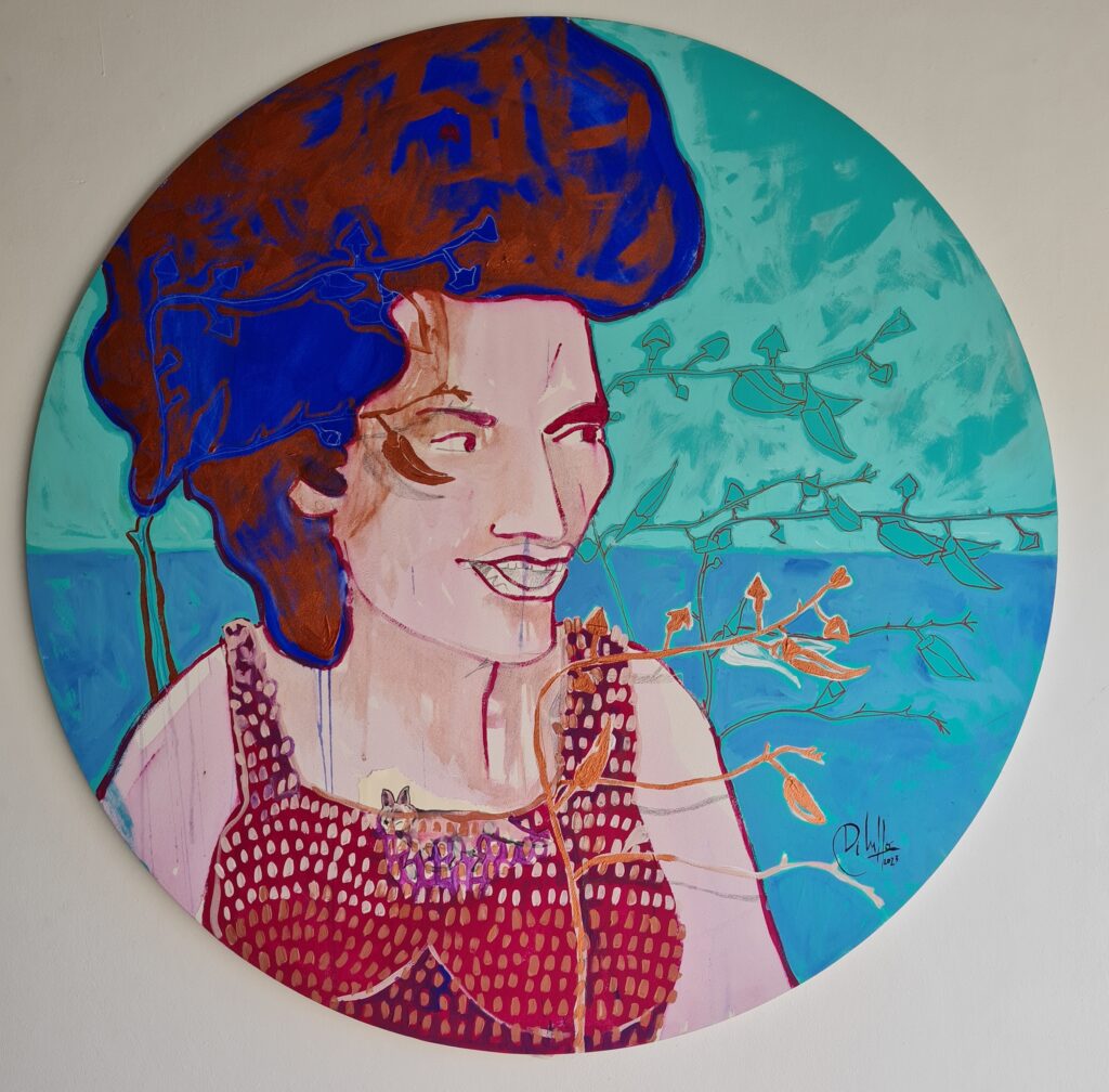 Medida 99cm de diámetro Técnica: mixta sobre tela.
